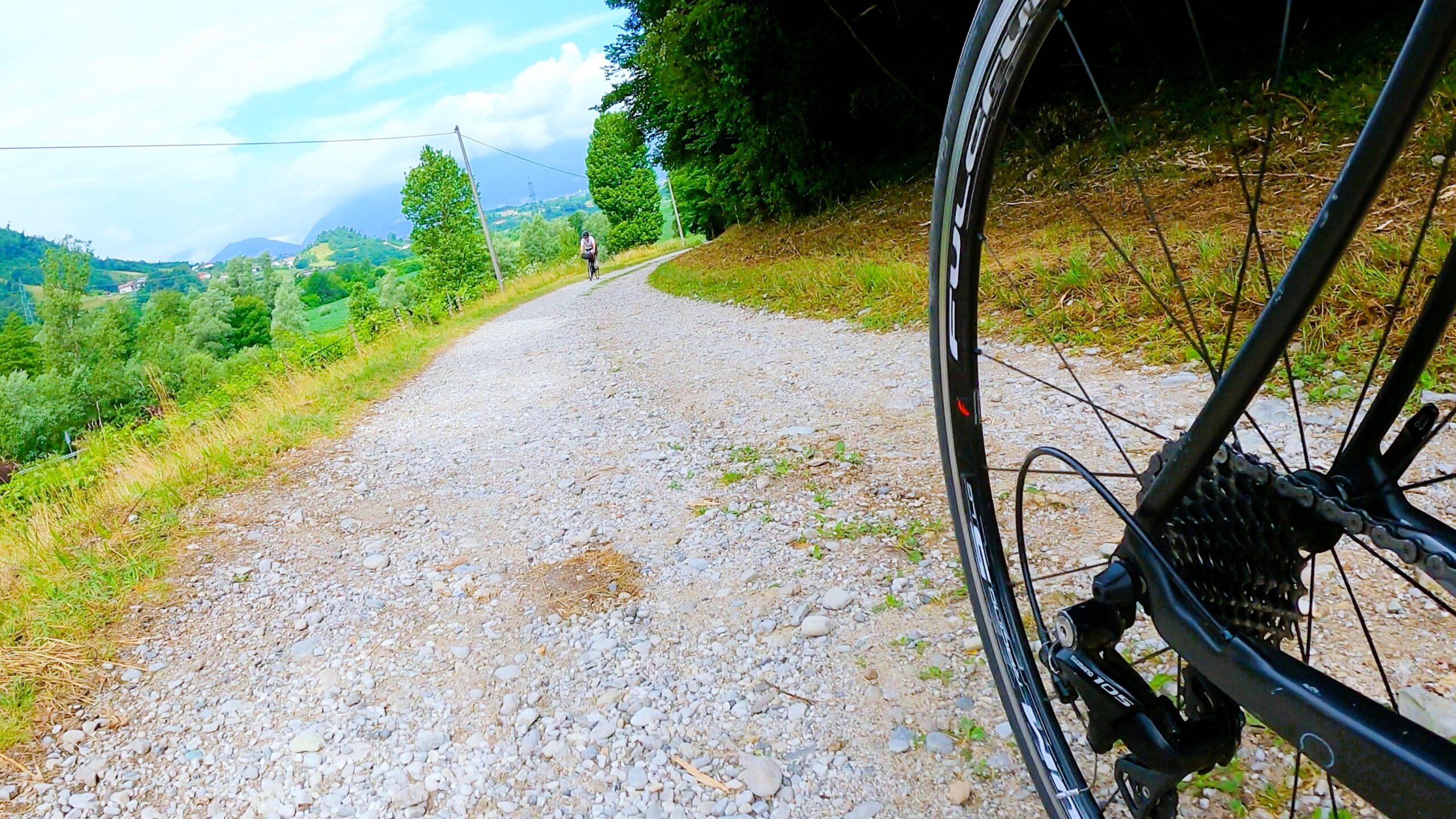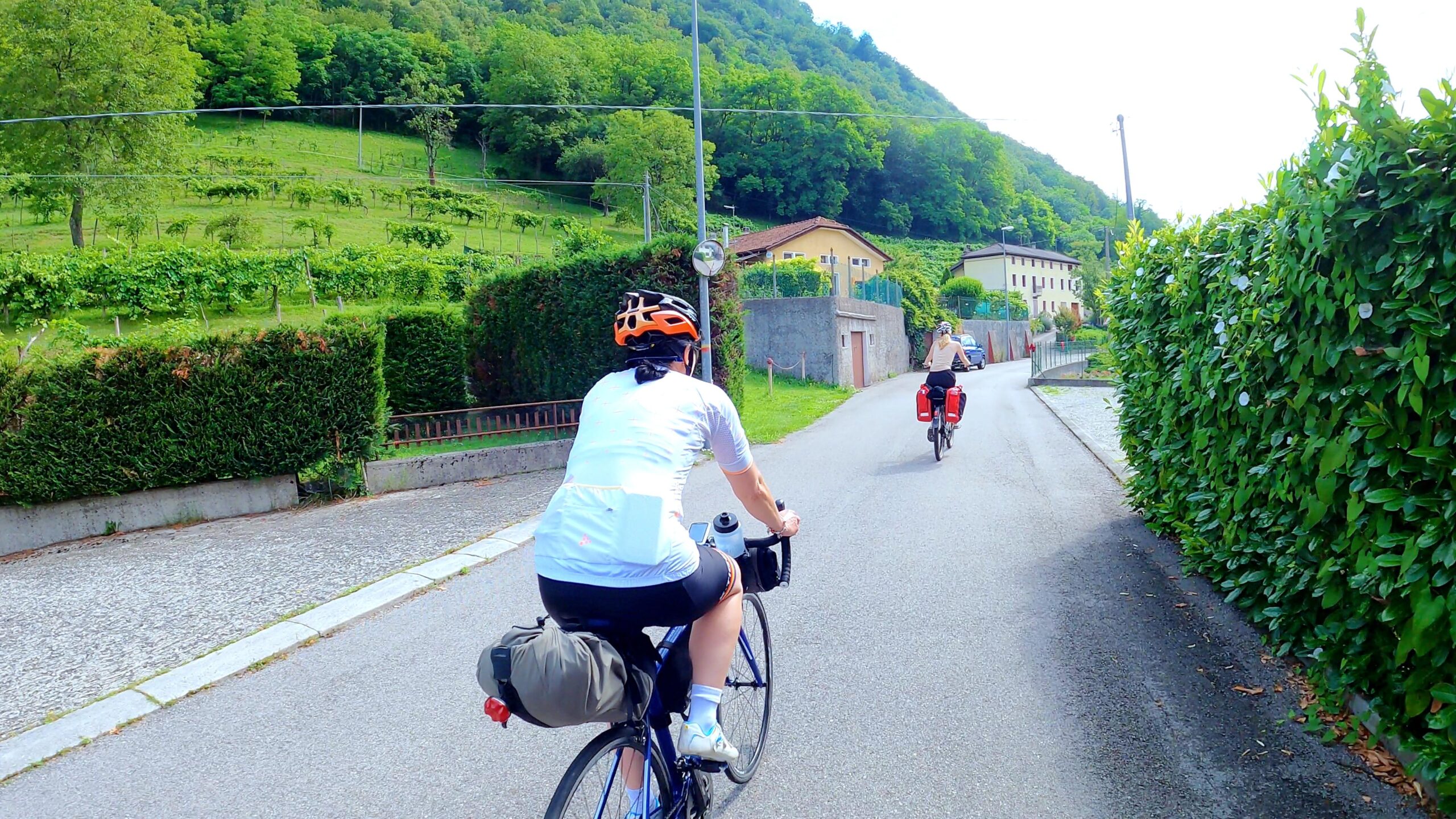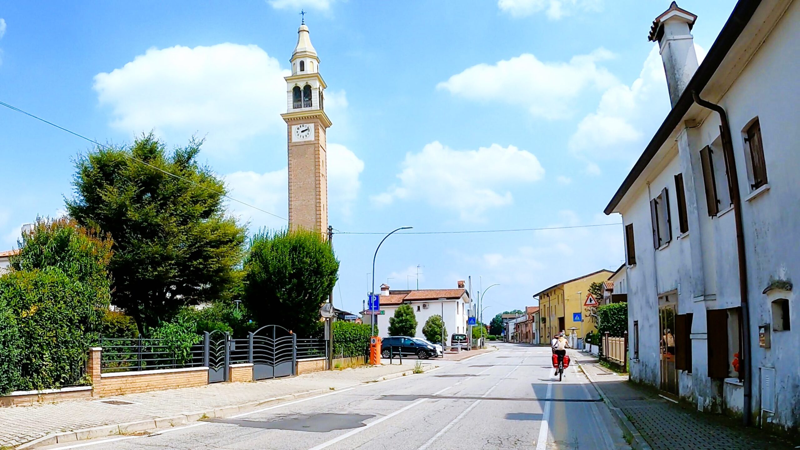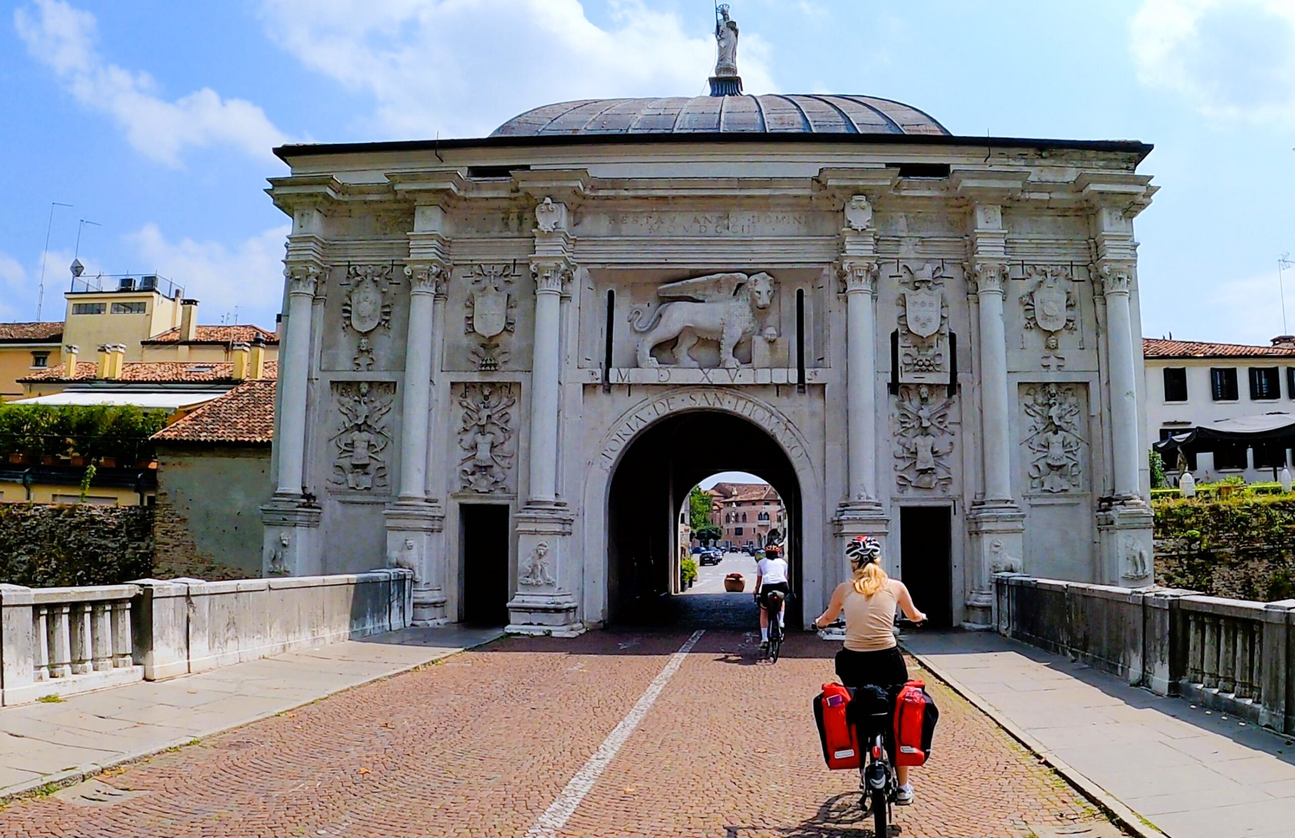 Nasz malowniczy rajd przez winnice Veneto z elementami kolarstwa przełajowego zakończył się defektem i trzeba było dokonać plenerowej wymiany dętki. Na szczęście poszło gładko i po chwili znowu byliśmy w trasie. Wkrótce zauważyliśmy, że otoczenie zaczęło się zmieniać – z górskich krajobrazów przenosiliśmy na płaskie tereny nizinne.
