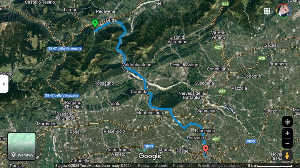 Po minięciu Feltre skierowaliśmy się w stronę rzeki Piawy.