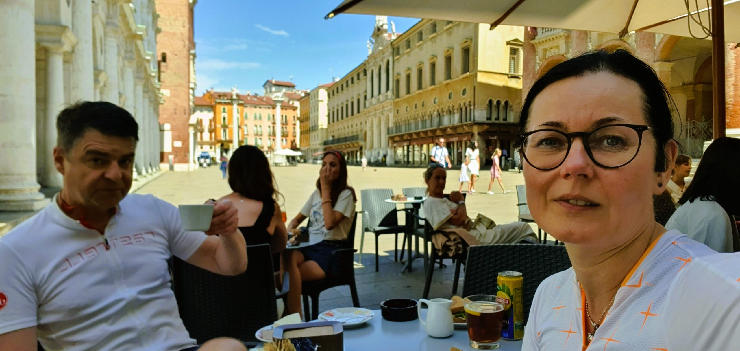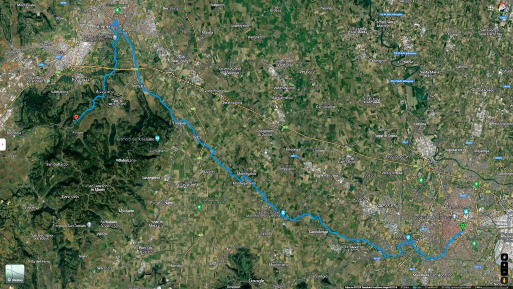 Z Vicenzy ruszyliśmy na południe, odkrywając, że każdy kolejny kilometr stanowi pewne wyzwanie. Łagodny szlak wzdłuż rzeki Bacchiglione był już wspomnieniem, a nas czekały podjazdy. Choć do Arcugnano mieliśmy zaledwie 10 kilometrów, to etapowy finisz mocno dał się nam we znaki.