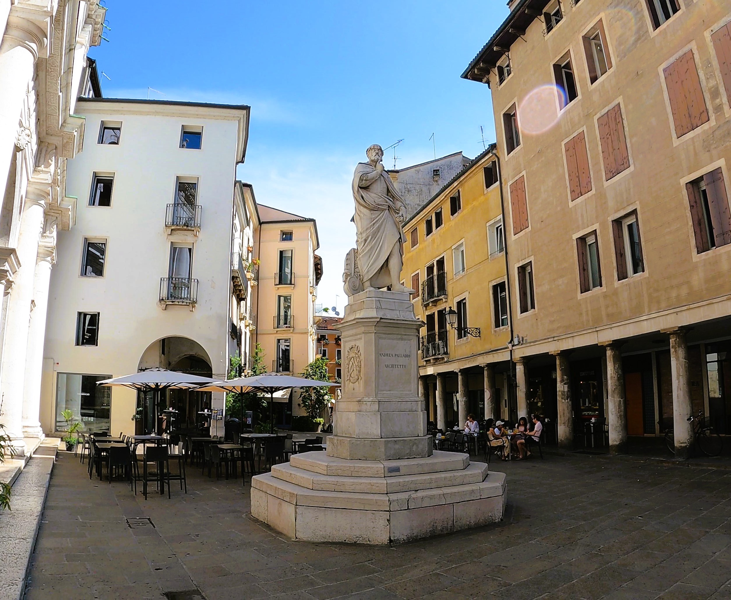 Rozpoczęliśmy od kawy z widokiem na pomnik architekta Andrea Palladio, którego dzieła odcisnęły silne piętno nie tylko na Vicenzy i regionie Venetto, ale na całej architekturze europejskiej. Wystarczy wspomnieć, że monumentalna Bazylika Palladiana w centrum Vicenzy oraz Wille Palladyńskie zostały wpisane na Listę Dziedzictwa Kulturowego UNESCO, a styl architektoniczny, który reprezentował został nazwany palladianizmem.
