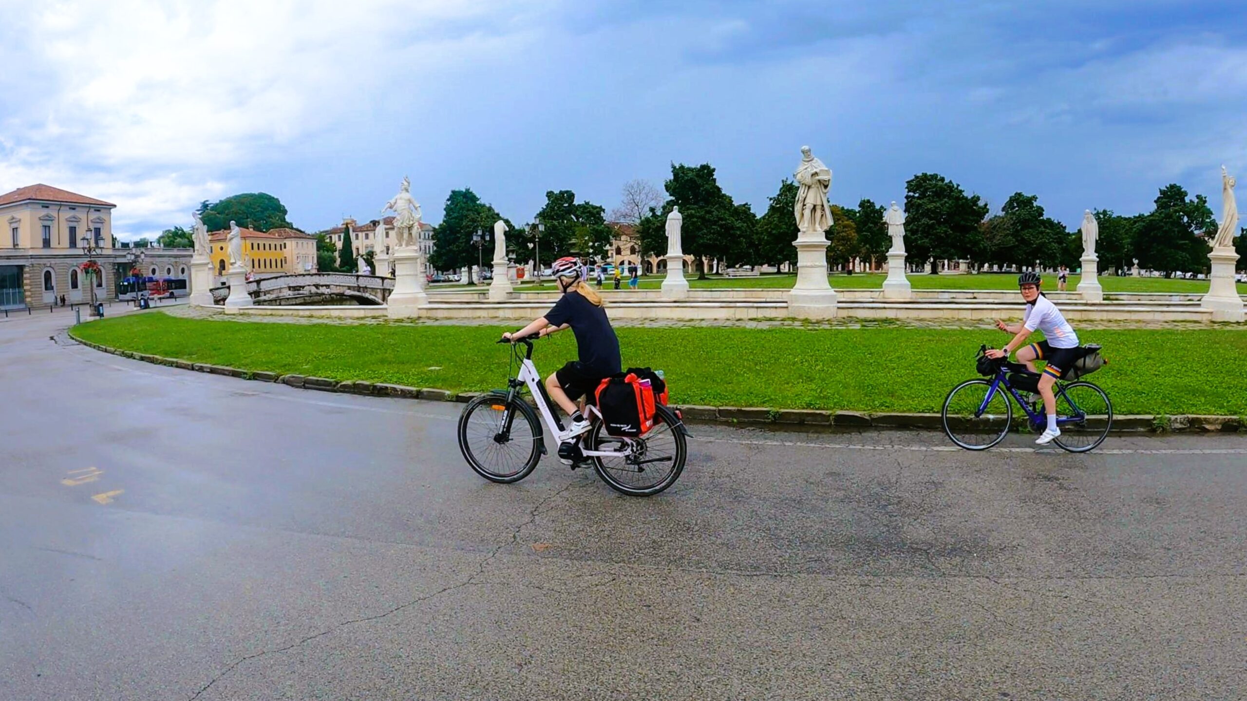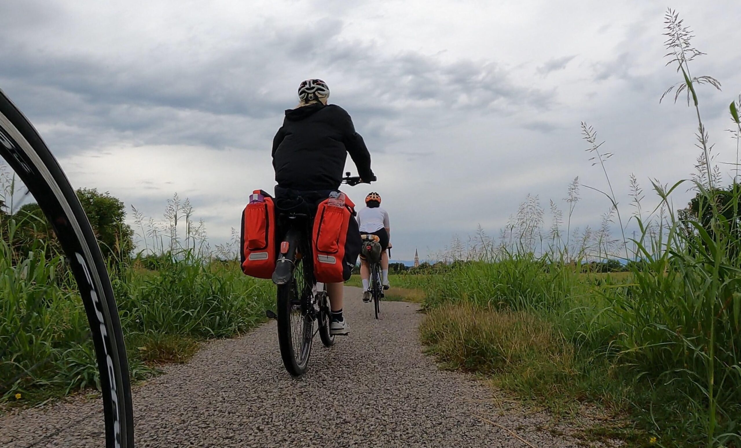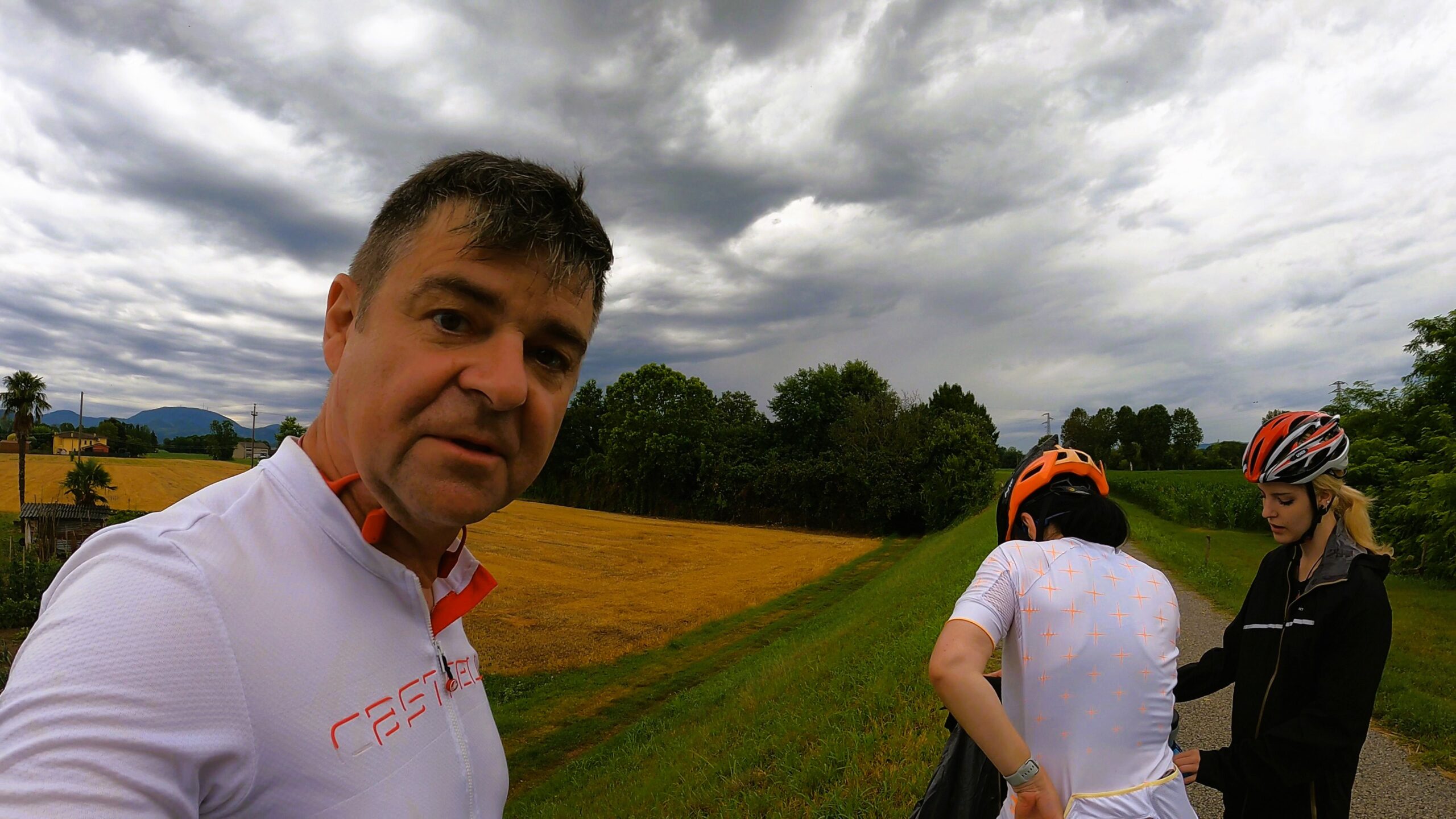 W pierwszej części dnia czekała nas trasa wzdłuż rzeki Bacchiglione, która jak wstążka wije się przez Wenecję Euganejską. Trasa była łagodna i szybko mijały pokonywane kilometry. Zapewne dalibyśmy się ponieść atmosferze tworzonej przez wolno płynącą rzekę oraz spokojne miejscowości Mondegalda czy Longara, ale niestety deszcz nie chciał nam odpuścić. Z ciężkich i ciemnych chmur nieustannie spadały na nas pojedyncze krople wody, a w okolicach San Marco deszcz się zagęścił i zostaliśmy zmuszeni do założenia nieprzemakalnych kurtek, które zdjęliśmy po przejechaniu jednego kilometra, ponieważ… znienacka przestało padać.