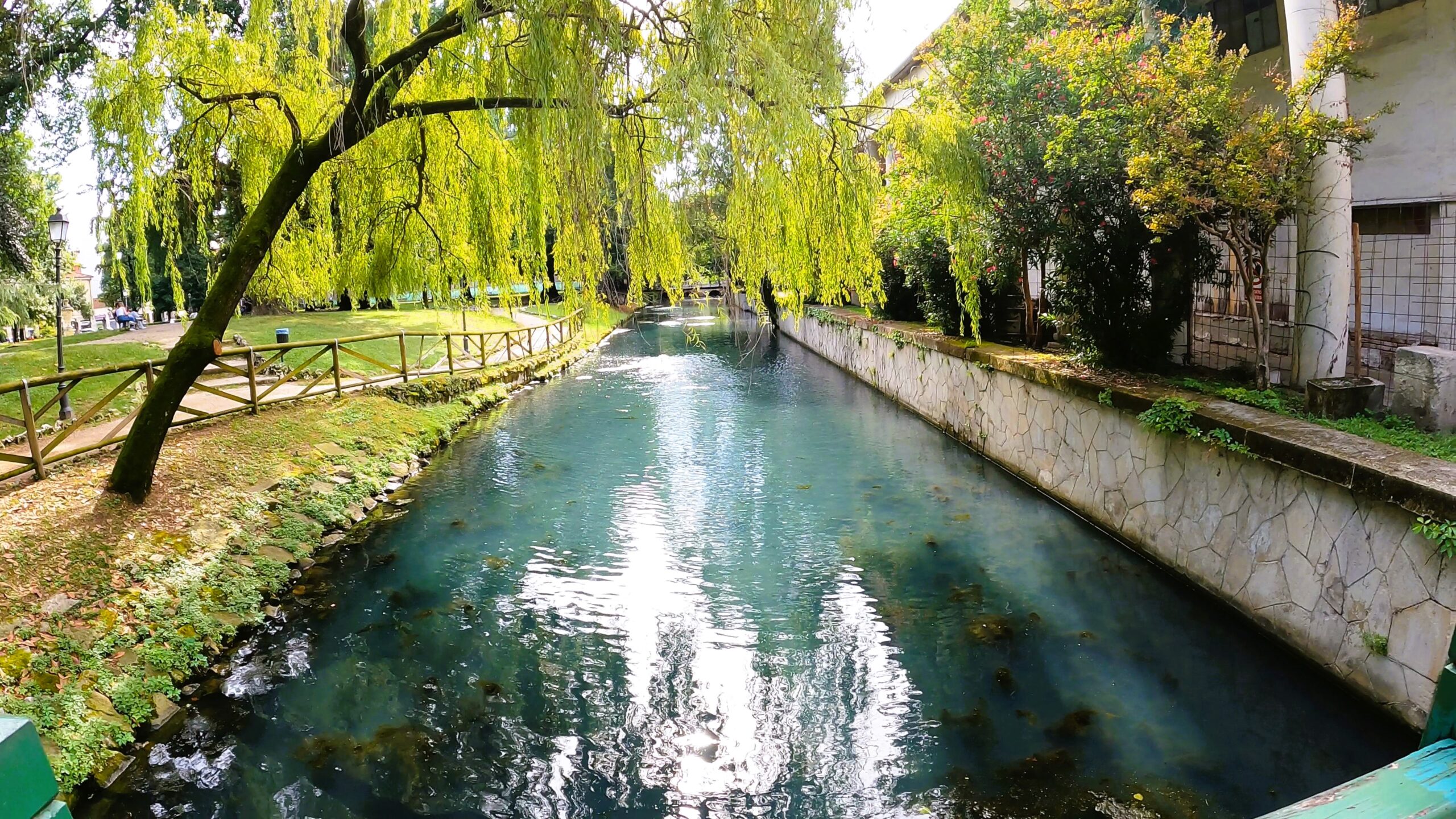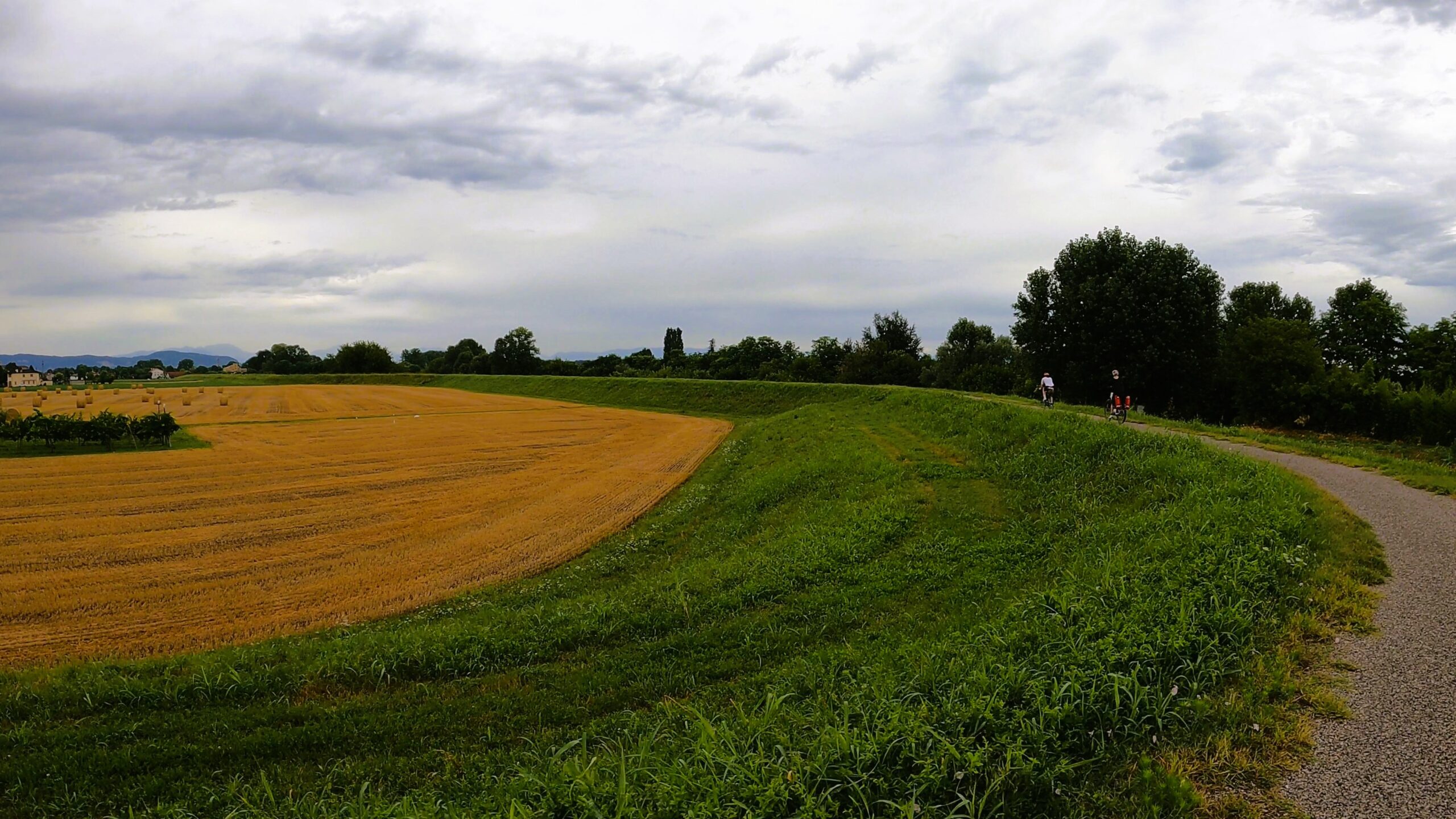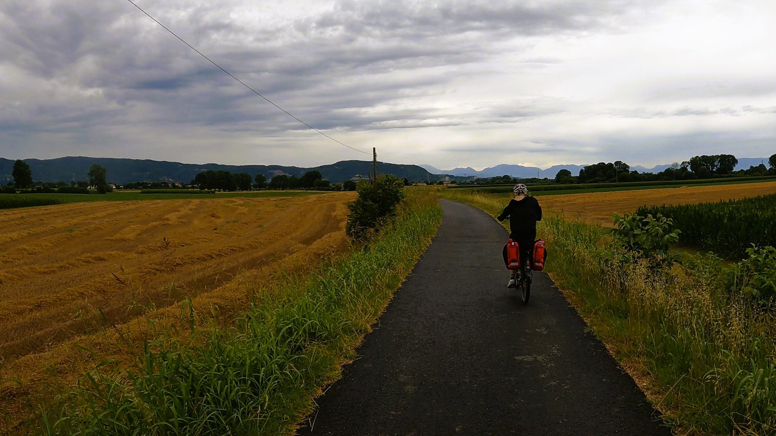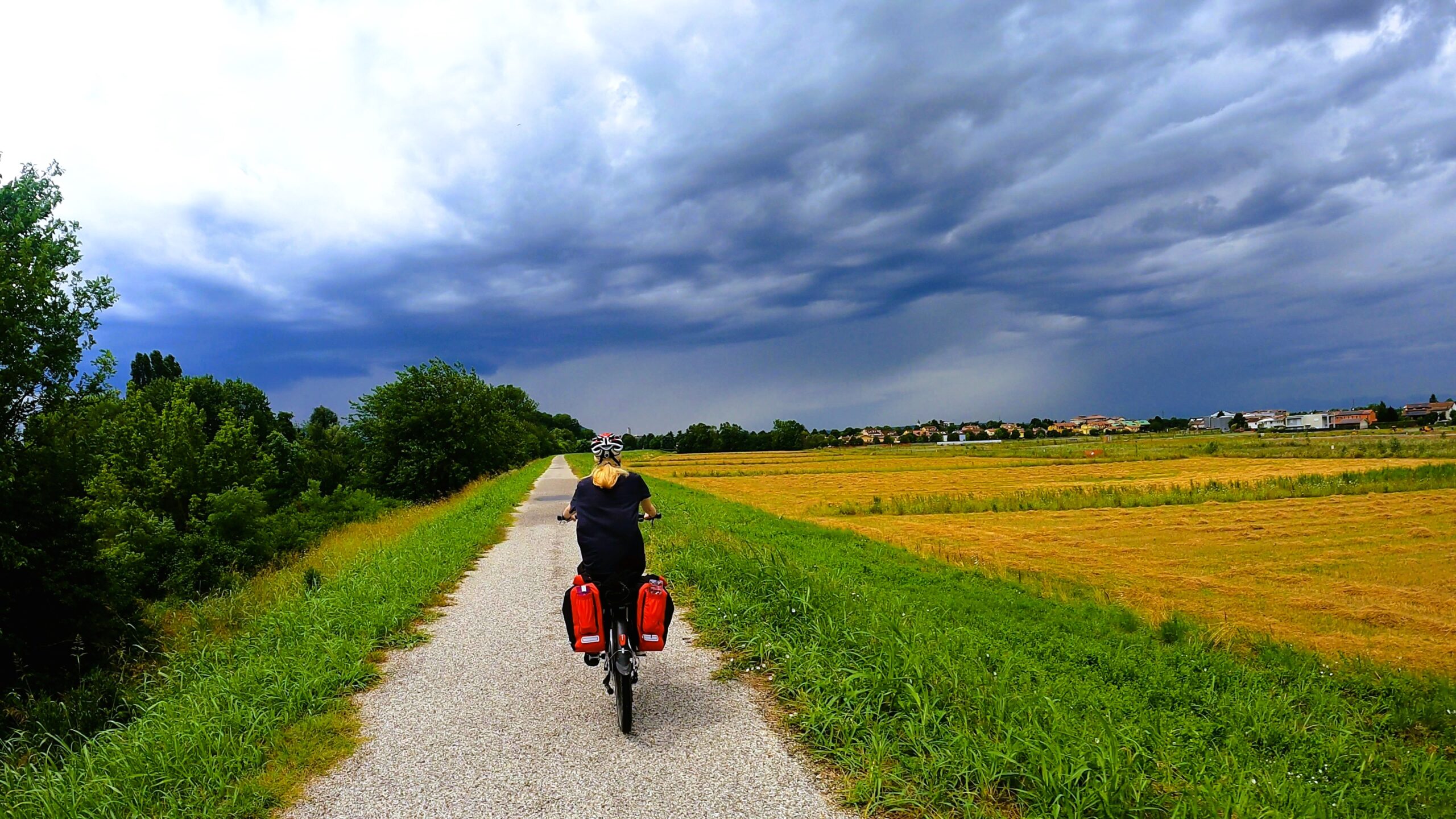 W pierwszej części dnia czekała nas trasa wzdłuż rzeki Bacchiglione, która jak wstążka wije się przez Wenecję Euganejską. Trasa była łagodna i szybko mijały pokonywane kilometry. Zapewne dalibyśmy się ponieść atmosferze tworzonej przez wolno płynącą rzekę oraz spokojne miejscowości Mondegalda czy Longara, ale niestety deszcz nie chciał nam odpuścić. Z ciężkich i ciemnych chmur nieustannie spadały na nas pojedyncze krople wody, a w okolicach San Marco deszcz się zagęścił i zostaliśmy zmuszeni do założenia nieprzemakalnych kurtek, które zdjęliśmy po przejechaniu jednego kilometra, ponieważ… znienacka przestało padać.