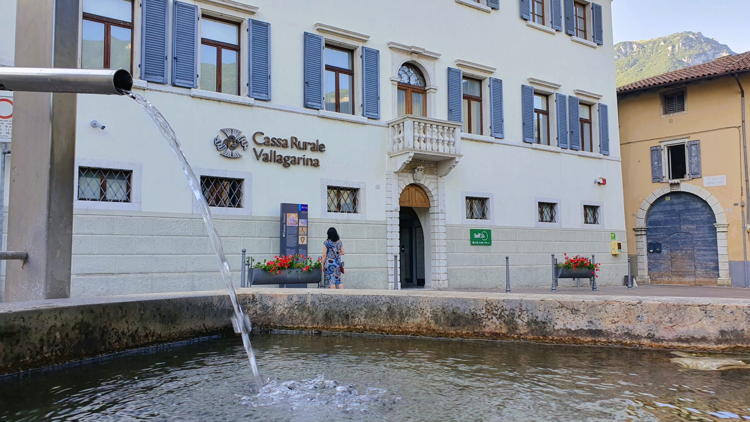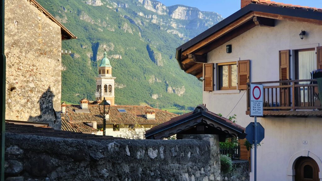 Avio przywitało nas spokojem, kameralnością i pięknem. Nad miastem, nie sposób nie zauważyć wkomponowanego w zbocze góry warownego zamku Castello di Avio. To jeden z najważniejszych zabytków regionu, datowany na początek XII wieku. Znajduje się w nim między innymi Sala dei Affreschi, przedstawiająca sceny miłosne i rycerskie, co podobno jest dość unikatowe dla zamków średniowiecznych.