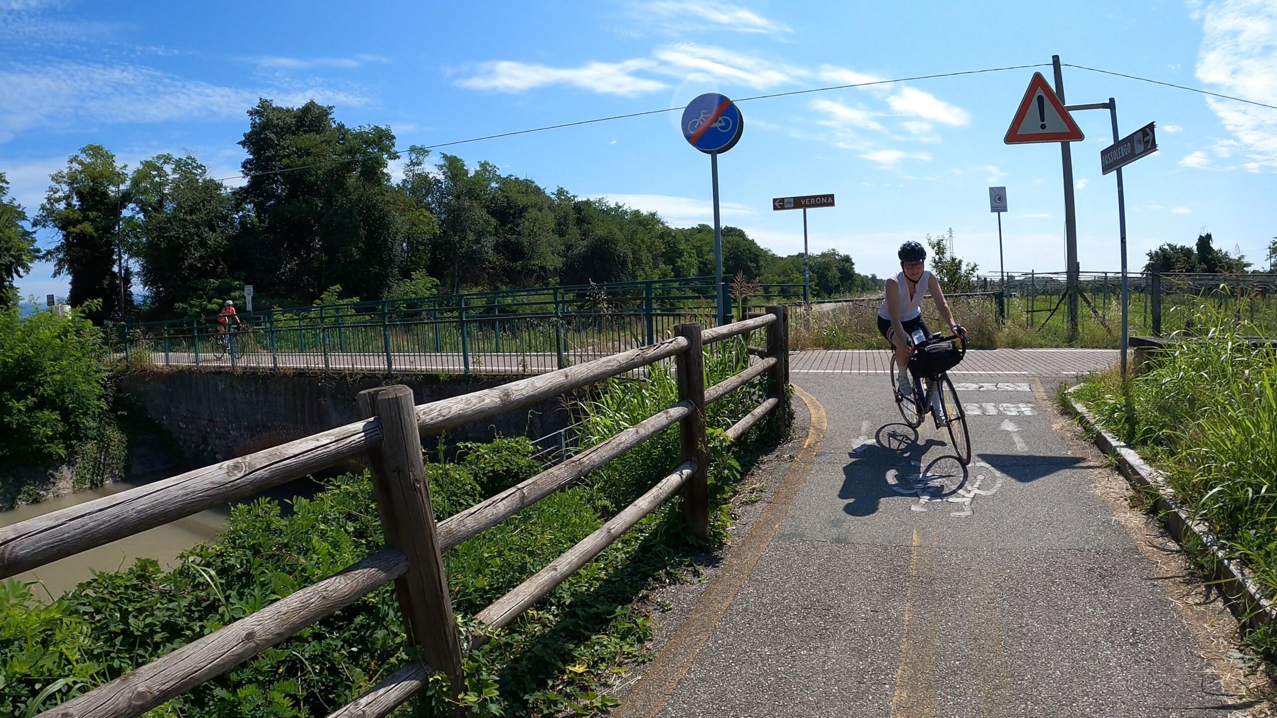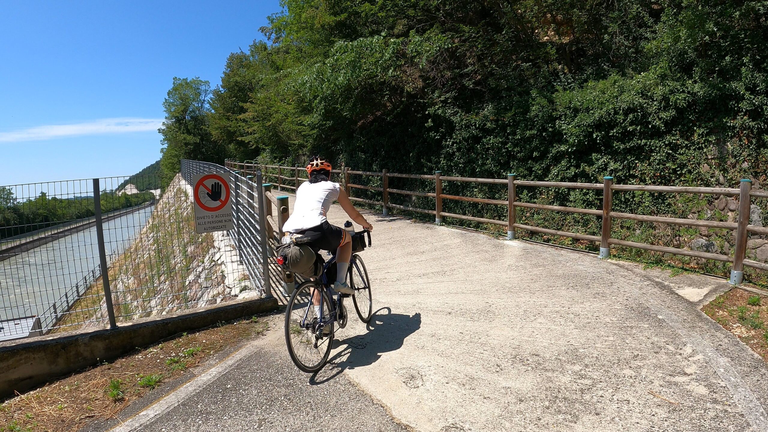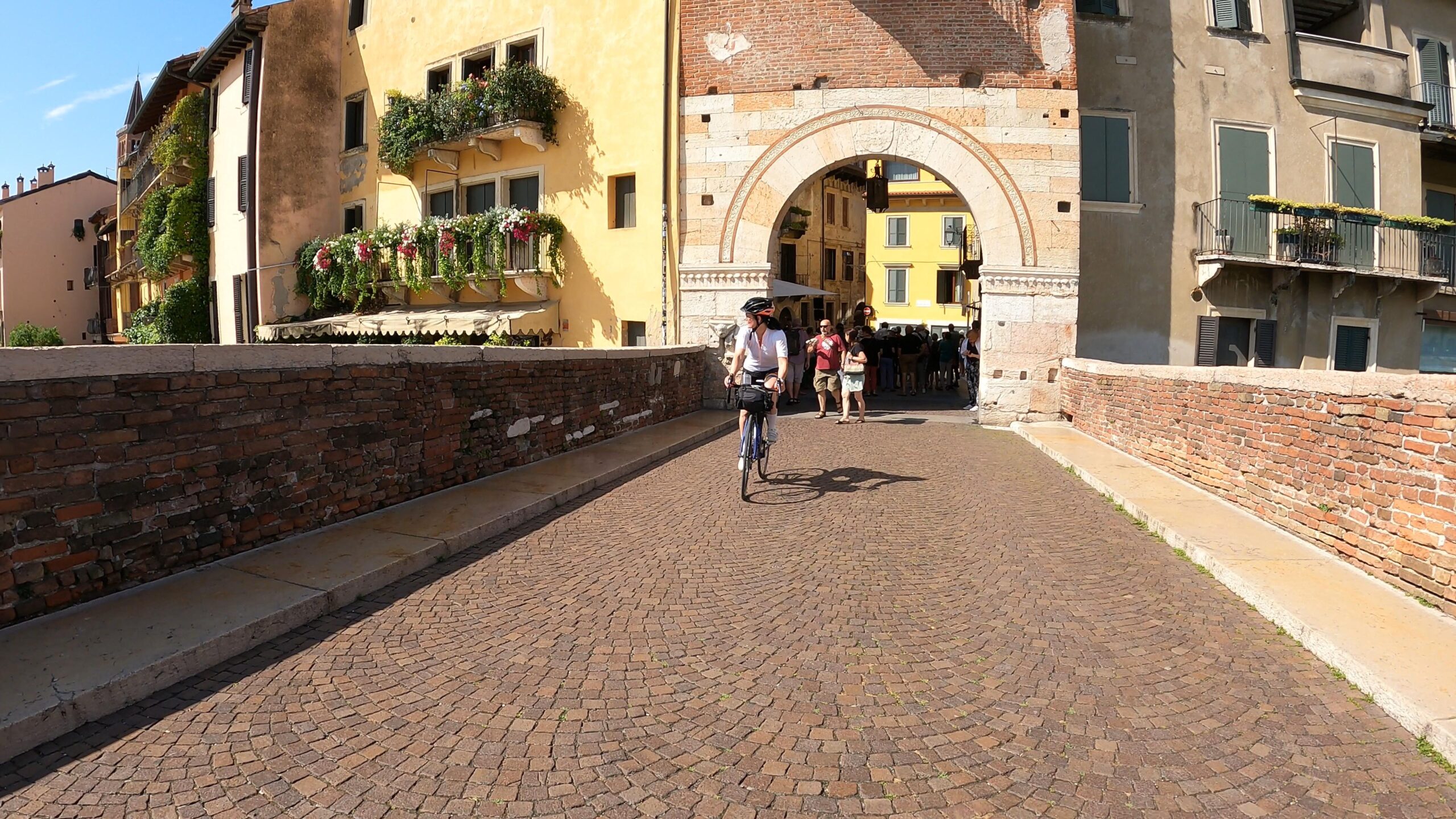 Ruszając z Werony wczesnym rankiem, opuściliśmy nasz hostel w B&B In Arena L’Opera z myślą o przedostatnim etapie podróży, który kończył się w niewielkiej miejscowości Avio. Zanim jednak wyjechaliśmy z miasta, postanowiliśmy jeszcze raz odwiedzić dość pusty o tej porze dnia plac Piazza Bra i podziwiać Arenę di Verona w promieniach porannego słońca. Stamtąd wąskimi uliczkami skierowaliśmy się w stronę rzeki Adyga, gdzie korzystając z mostu Ponte, przejechaliśmy na jej lewy brzeg. Tam, wygodne i szerokie ścieżki rowerowe prowadziły nas dalej przez miasto, umożliwiając łatwe przedostanie się na otwarte tereny.