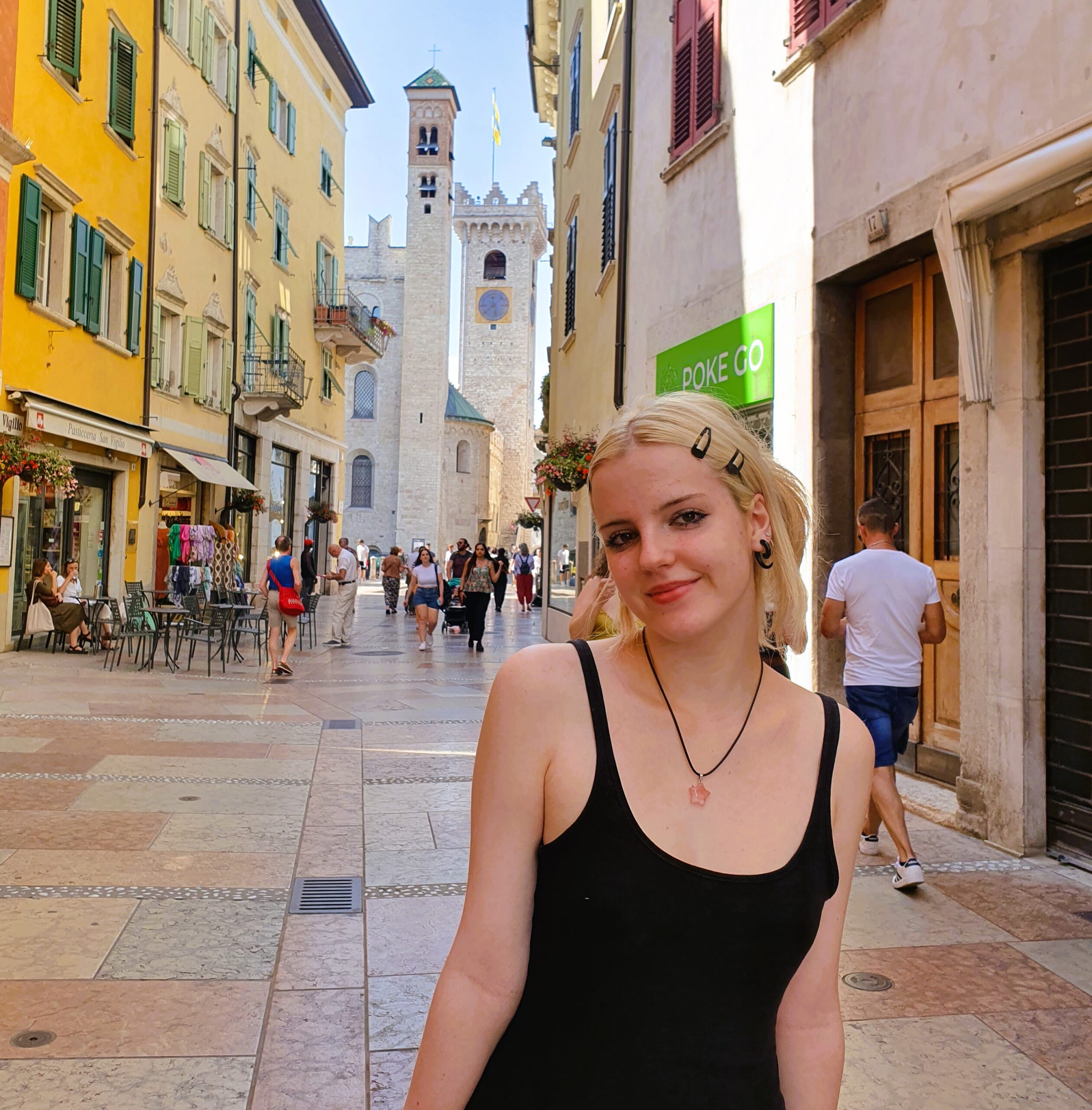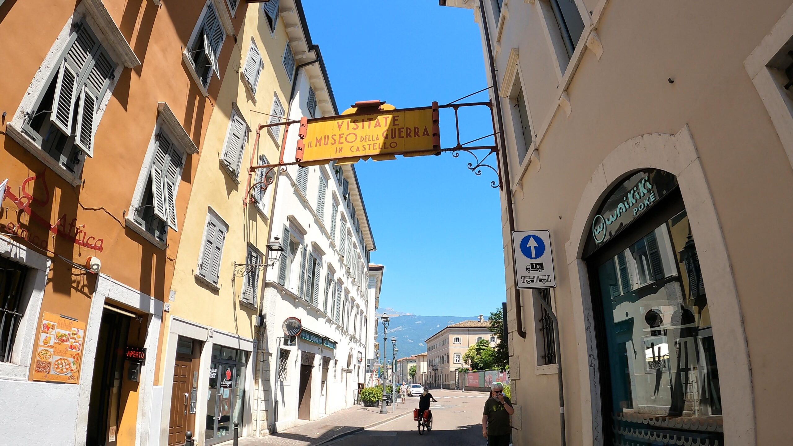 Po około 30 kilometrach dotarliśmy do Rovereto. Skutki naszego niedostatecznie pożywnego śniadania zaczęły być odczuwalne, co skłoniło nas do poszukiwań czegoś bardziej sycącego do spożycia. Przy okazji dowiedzieliśmy się, że to niewielkie miasto nad Adygą posiada naprawdę imponującą liczbę zabytków oraz ciekawostek.