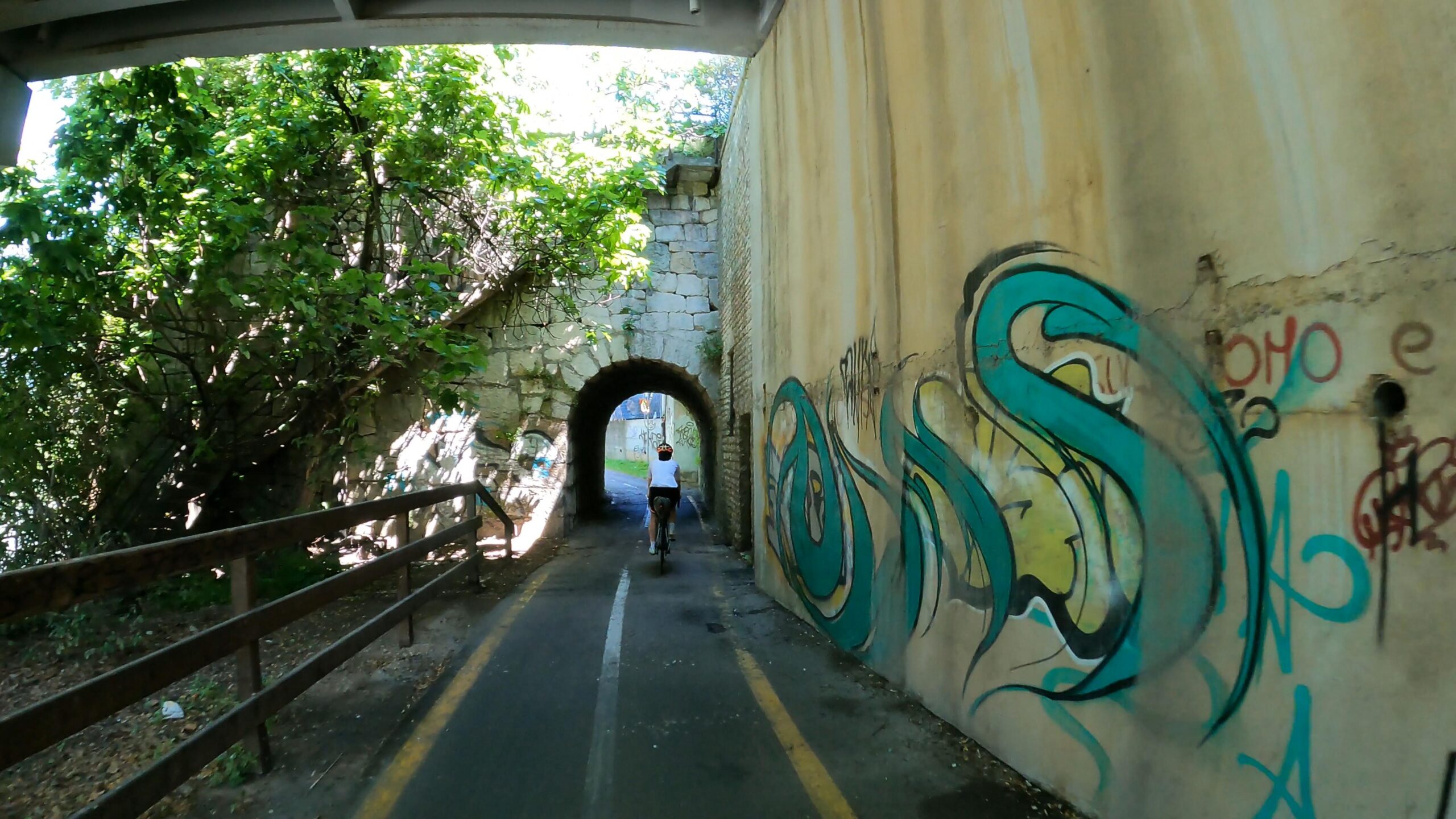 Po opuszczeniu Aly nasza droga wiodła przez sielskie krajobrazy wiejskie. Wierni ścieżkom wzdłuż Adygi i przyjaznej trasie rowerowej, ignorowaliśmy zuchwałe sugestie naszych nawigacji, które konsekwentnie upierały się, aby skierować nas na drogi samochodowe. Odrzucając ich cyfrowe protesty, w harmonii z otoczeniem przemierzaliśmy obszary rozpościerających się aż po horyzont winnic, świadczących o niesamowitej urodzajności tych ziem.