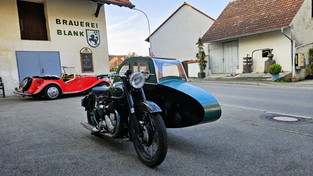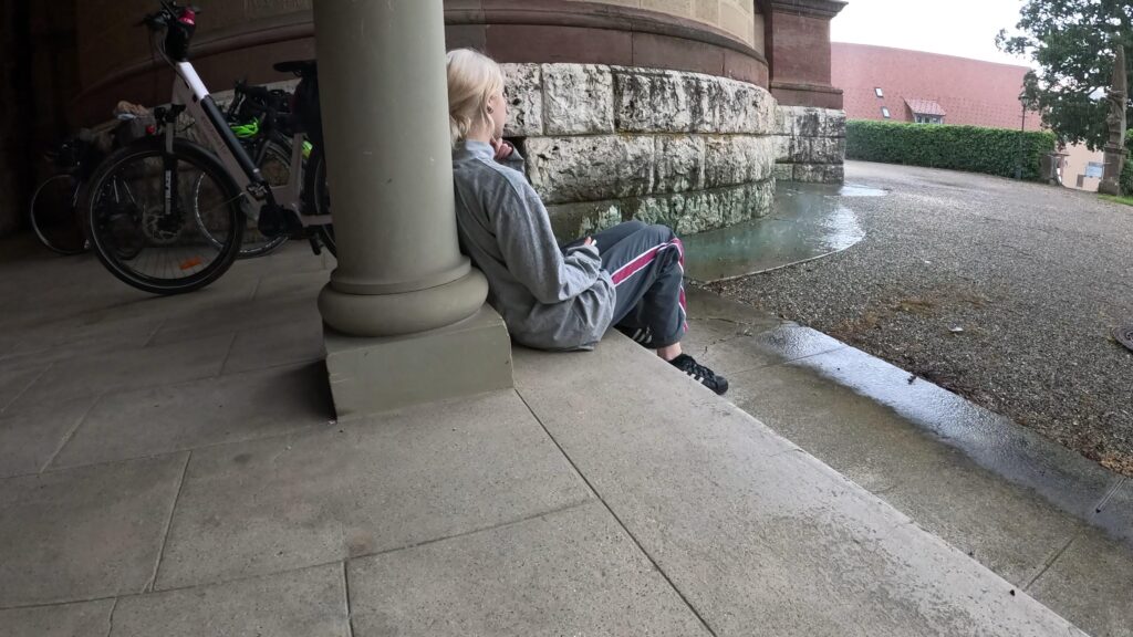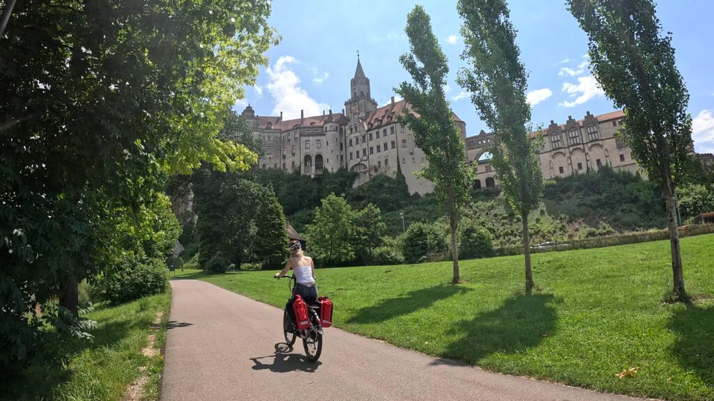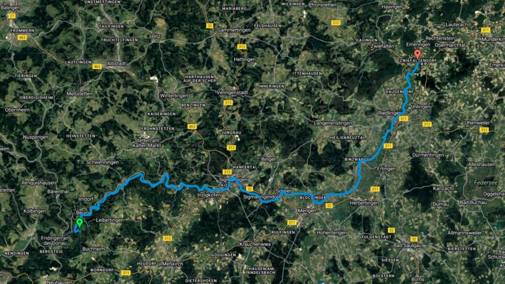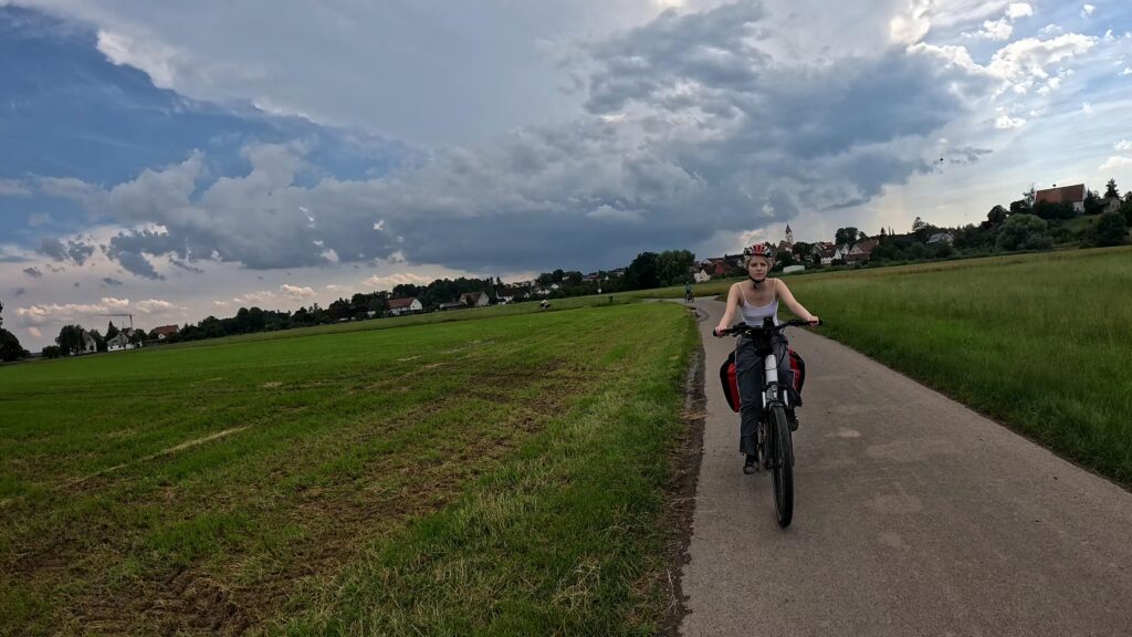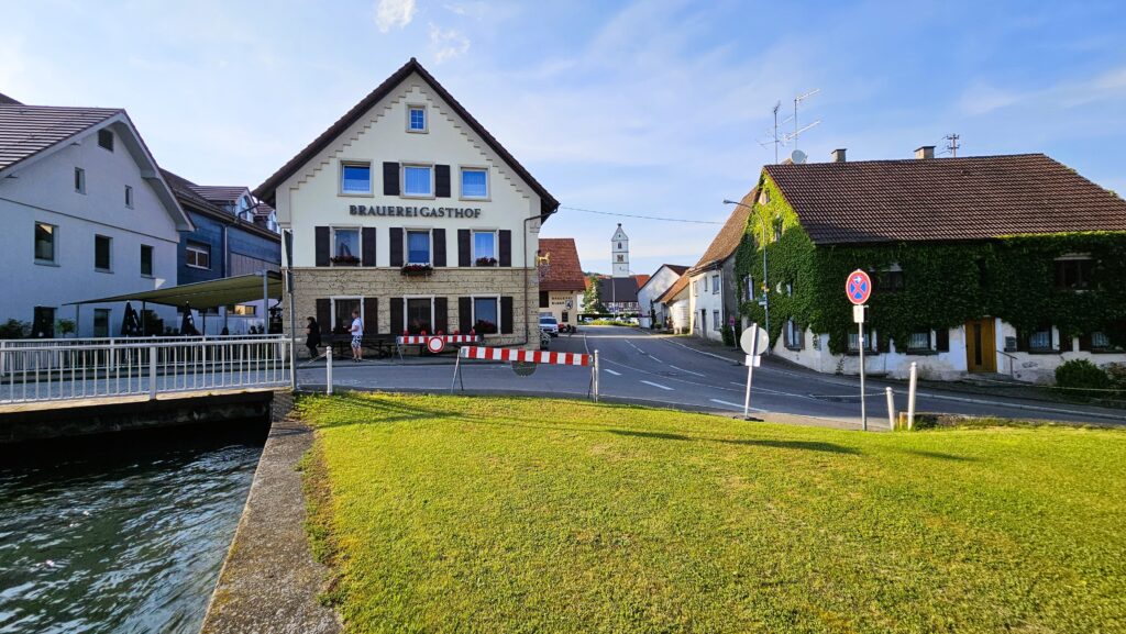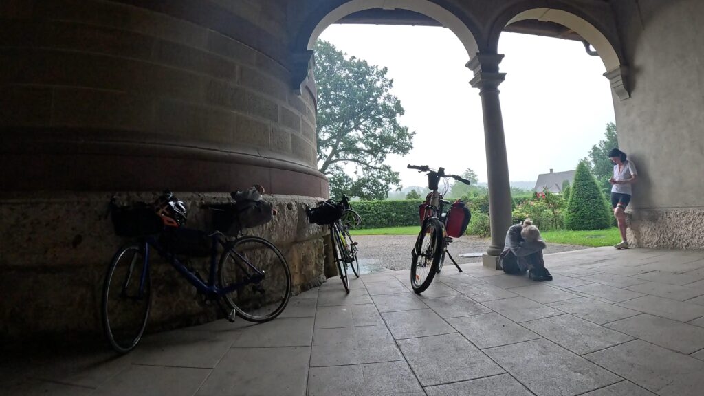 Po lunchu w Sigmaringen niebo zaczęło się chmurzyć, ale prognozy w Internecie jasno twierdziły: deszcz nas ominie. No cóż, skoro Internet nigdy się nie myli, postanowiliśmy zaufać nowoczesnej technologii i ruszyć w trasę. Niestety, ledwie przejechaliśmy kilometr, gdy na naszych twarzach poczuliśmy pierwsze krople. Chwilę później byliśmy już w środku solidnej ulewy. Morał? Jak mawiali starożytni Chińczycy: „Ufaj Internetowi, ale miej przy sobie parasol 😊!”