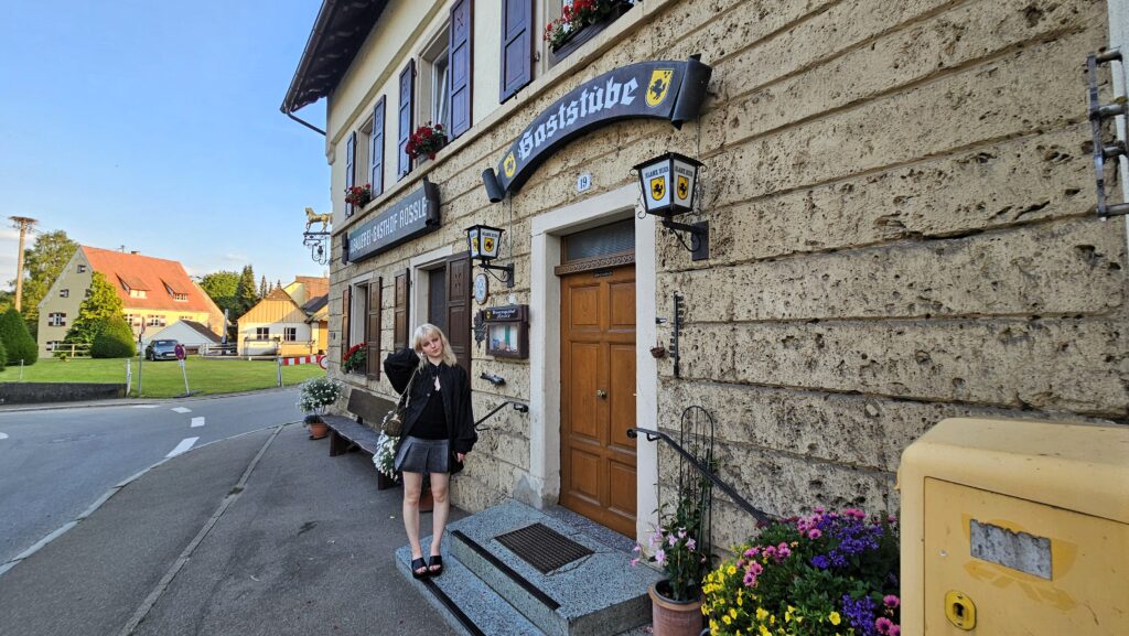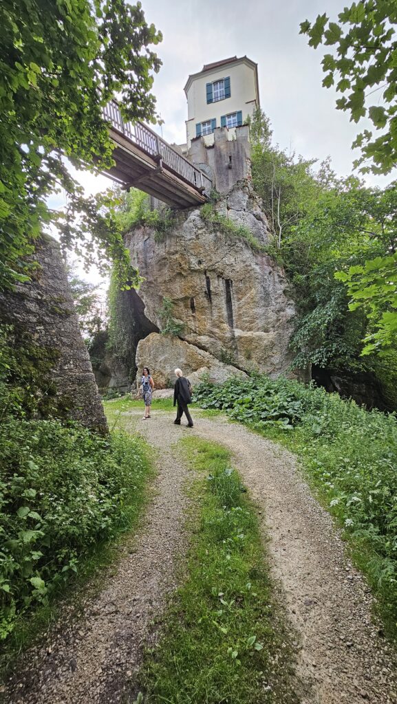 Noc spędziliśmy w Jägerhaus, niedaleko Fridingen. Było to nie tylko klimatyczne gospodarstwo agroturystyczne, ale także miejsce z niezwykłym widokiem na górujący nad nim zamek. Choć jest to prywatna rezydencja, warto zwrócić uwagę na krzyż prawosławny zdobiący wieżę – niespodziewany akcent w tym regionie. Dla miłośników technologii ciekawostką może być ładowarka do samochodów elektrycznych w trudno dostępnym miejscu, w środku lasu, tuż przy zamku.