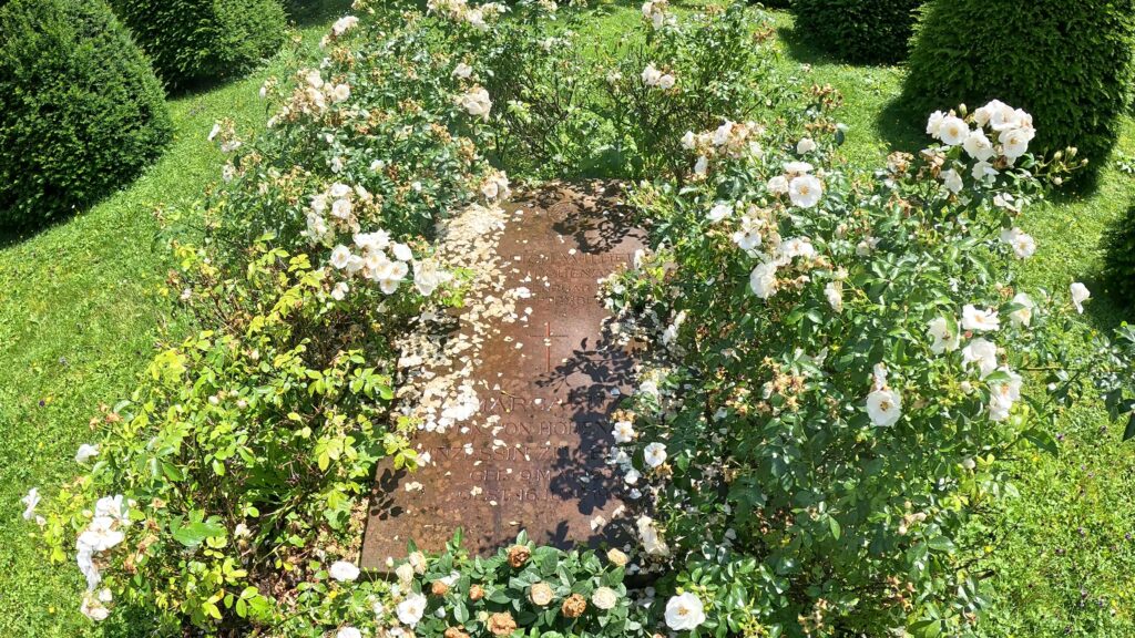 Deszcz przeczekaliśmy w przedsionkach Klasztoru Inzigkofen. To spokojne miejsce pełne, gdzie znajdują się groby Friedricha Wilhelma i Margarity z rodu Hohenzollernów, o czym dowiedzieliśmy się, gdy wyszliśmy na podwórko po ustaniu opadów. Zobaczyliśmy pięknie udekorowany płatkami róż grobowiec. W promieniach słońca i skrzących się jeszcze kroplach deszczu widok był zarówno nostalgiczny, jak i romantyczny.