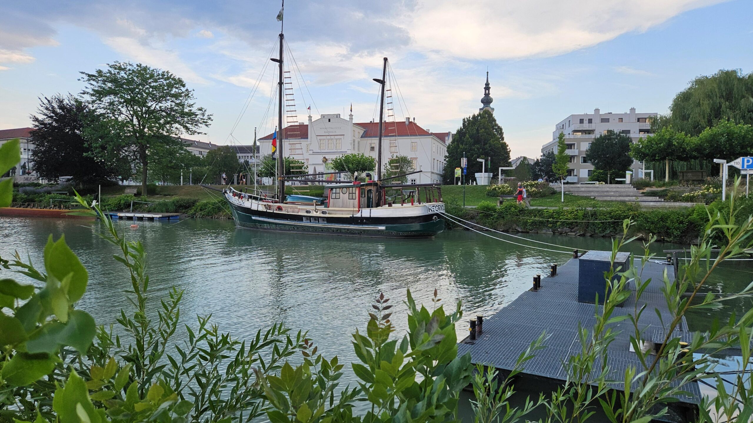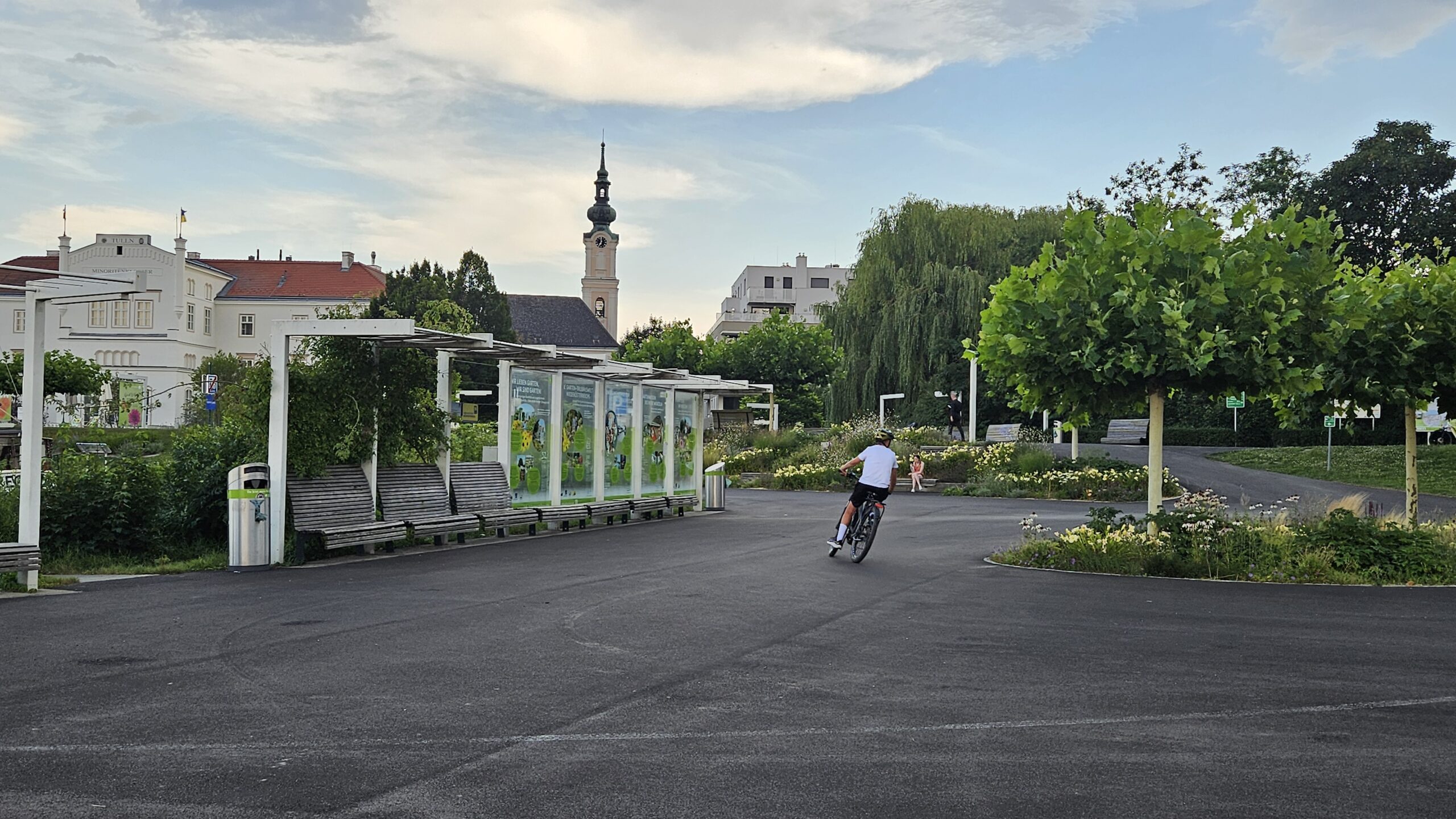 Ostatnie kilometry do Tulln pokonaliśmy w deszczu, który na szczęście okazał się przelotny. Tulln to niewielkie miasto o długiej historii, sięgającej czasów rzymskich, kiedy to funkcjonowało jako fort o nazwie Comagena. Dziś Tulln jest znane jako „miasto ogrodów”, a jego parki i zieleń przyciągają zarówno mieszkańców, jak i turystów.
