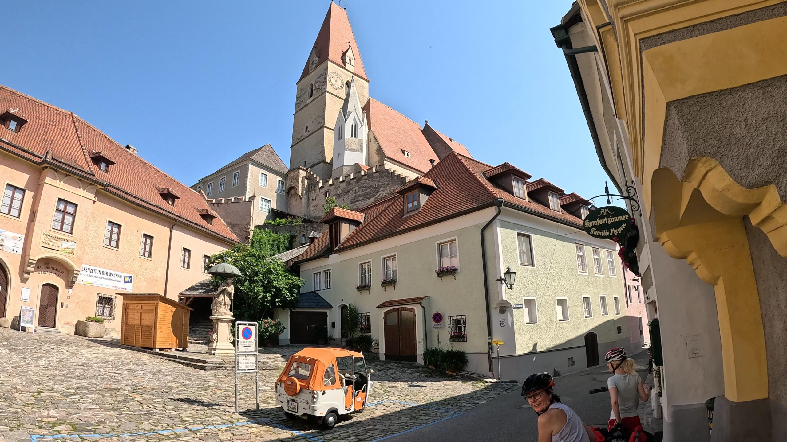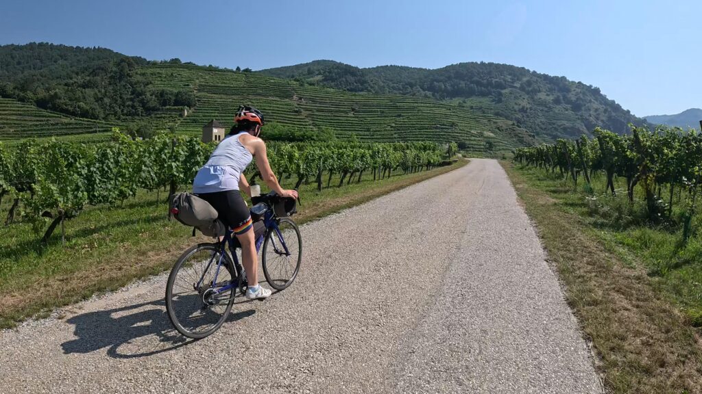 Dzień rozpoczęliśmy w Spitz, otoczeni winnicami i morelowymi sadami, które są znakiem rozpoznawczym Doliny Wachau. Temperatura już od rana przekraczała 30 stopni, a prognozy zapowiadały, że będzie tylko goręcej. Mimo to, krajobrazy wokół nas były tak piękne, że trudno było narzekać. Jadąc wzdłuż Dunaju, mijaliśmy kolejne winnice, które w słońcu wyglądały jak mozaika zieleni i złota.