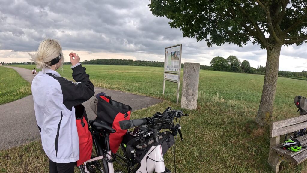 Plan jest prosty: około 60 kilometrów wzdłuż współczesnego przebiegu Via Claudia Augusta. Trasa prowadzi przez nizinne tereny południowej Bawarii, dlatego różnice wysokości nie są duże, choć wiatr potrafi dodać trudności. Prognoza nie zaskakuje – chłodno, chmury i silny wiatr z przodu. Jedziemy więc spokojnie, wiedząc, że to on będzie dziś głównym towarzyszem drogi, a może też nauczy nas, jak doceniać każdy kilometr, który uda się pokonać mimo oporu.