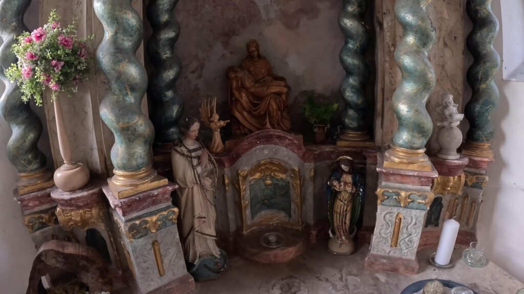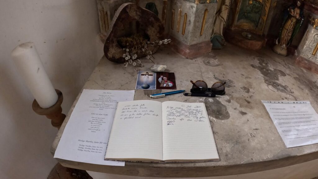 Przed Hohenwart trasa prowadzi w dół w kierunku rzeki Lech. Przy drodze stoi niewielka kapliczka upamiętniająca powodzie, które wielokrotnie nawiedzały tę okolicę. Wewnątrz na ścianie zaznaczono poziomy wody z różnych lat, z których najwyższy pochodzi z 1940 roku. Na ołtarzu leży zeszyt z wpisami odwiedzających – proste świadectwo tego, że to miejsce wciąż przyciąga ludzi, którzy chcą zatrzymać się choć na chwilę, pomyśleć, pomodlić się.
