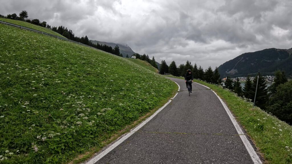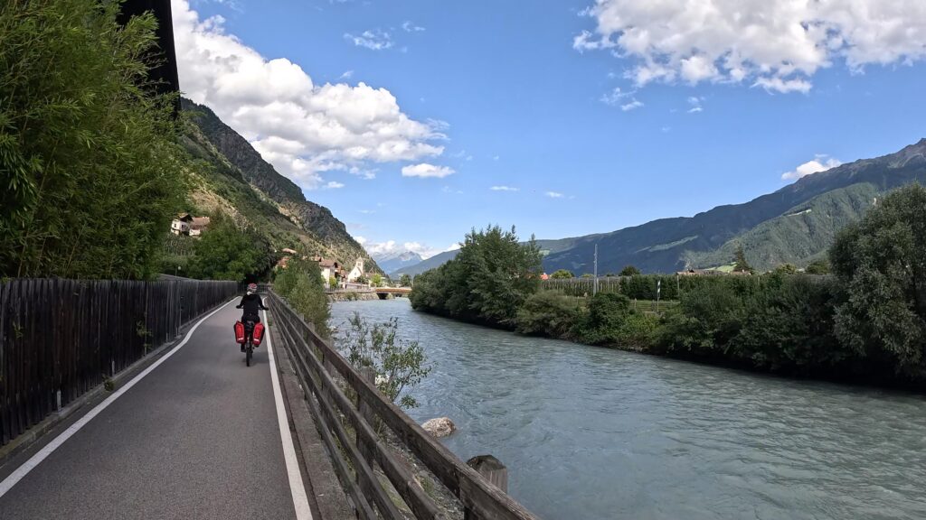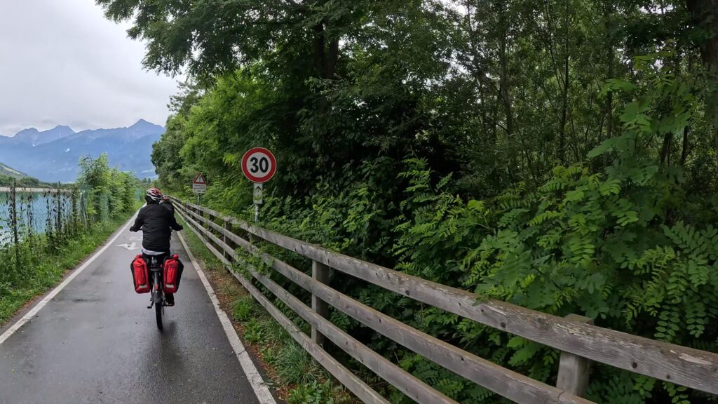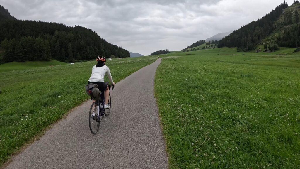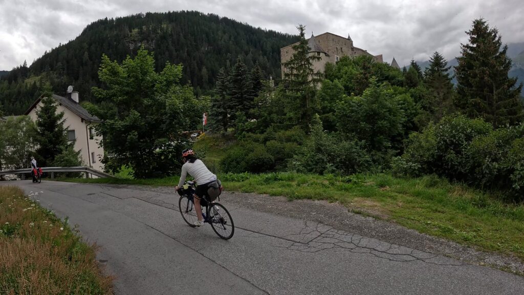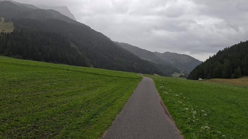 Ruszamy z Nauders, czując jeszcze w nogach trudy poprzedniego dnia. Już po kilku minutach czeka nas krótki, lecz konkretny podjazd na Reschenpass (1507 m n.p.m.), przełęcz oddzielającą Austrię od Włoch. Granica wygląda niepozornie – żadnych bram ani punktów kontrolnych, tylko kilka znaków i asfalt ginący we mgle. W ten sposób, niemal niezauważalnie, przekraczamy granicę i wjeżdżamy do Italii.
