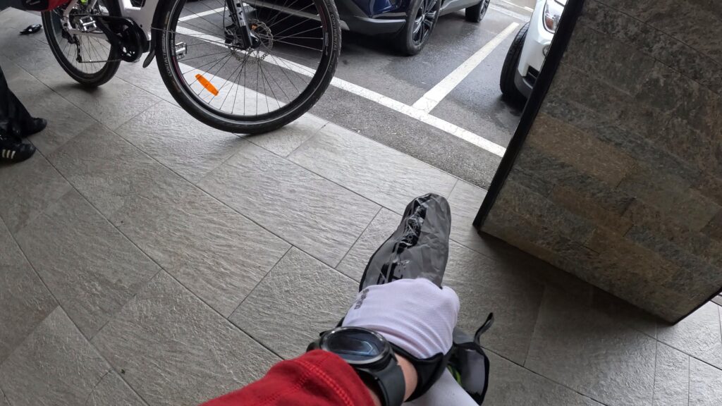 Po włoskiej stronie wita nas deszcz. Najpierw drobny, po chwili już intensywny i zimny. Niebo szarzeje, a asfalt błyszczy od wody. Znajdujemy niewielki bar przy drodze – kawa, ciepło i chwila oddechu stają się luksusem. Prognozy zapowiadają kolejne trzy godziny opadów, więc zakładamy przeciwdeszczowe kurtki i ochraniacze. Nie ma co czekać – trzeba jechać dalej, ponieważ inaczej nie zaczniemy tego odcinka na dobre.