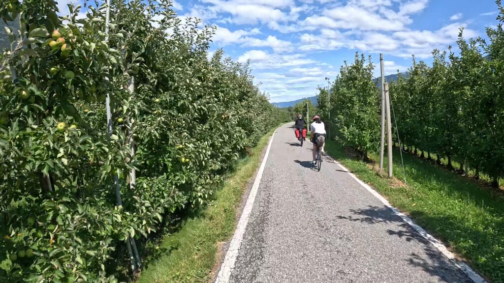 Popołudniu deszcz ustępuje. Zdejmujemy kurtki i ochraniacze, a powietrze natychmiast nabiera nowego zapachu – wilgotnej ziemi, jabłek i wina. Cykady zaczynają grać, a wśród sadów pojawiają się pierwsze winnice. Powoli czujemy, że Alpy zostają za plecami, a zaczyna się południe Europy.