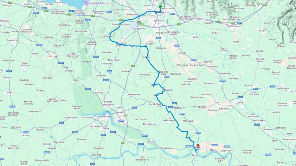 📍 Trasa: Werona → Isola della Scala → Villimpenta → Ostiglia