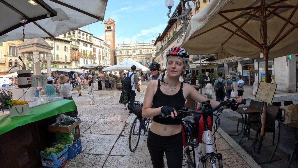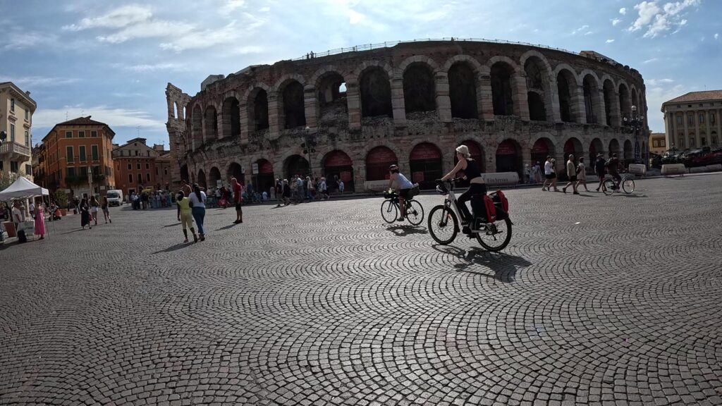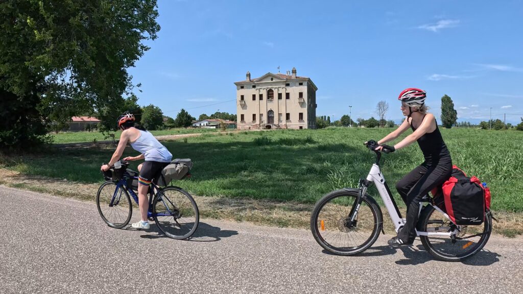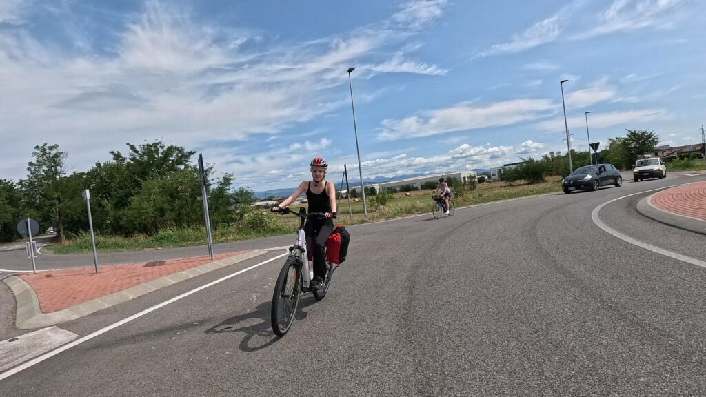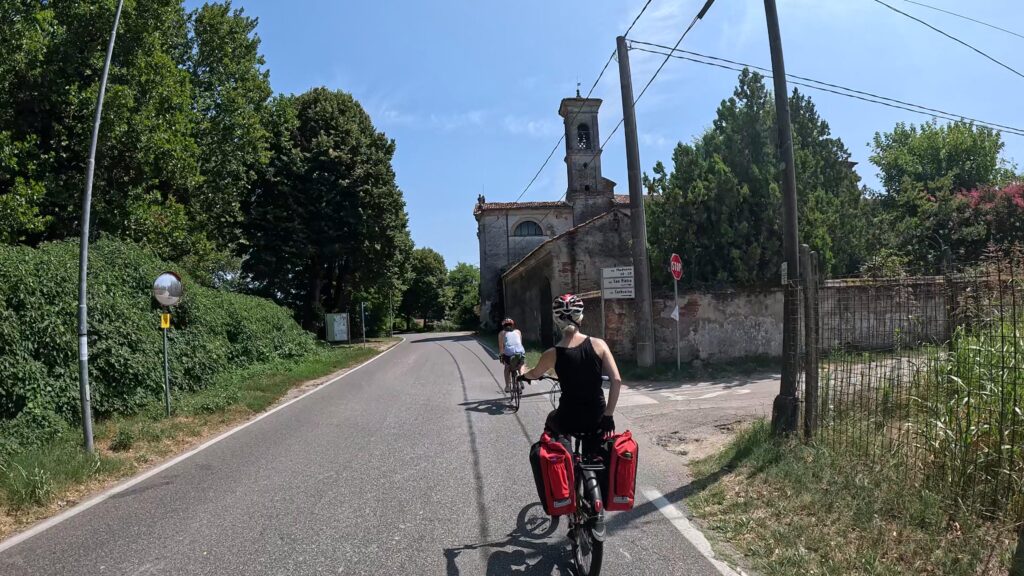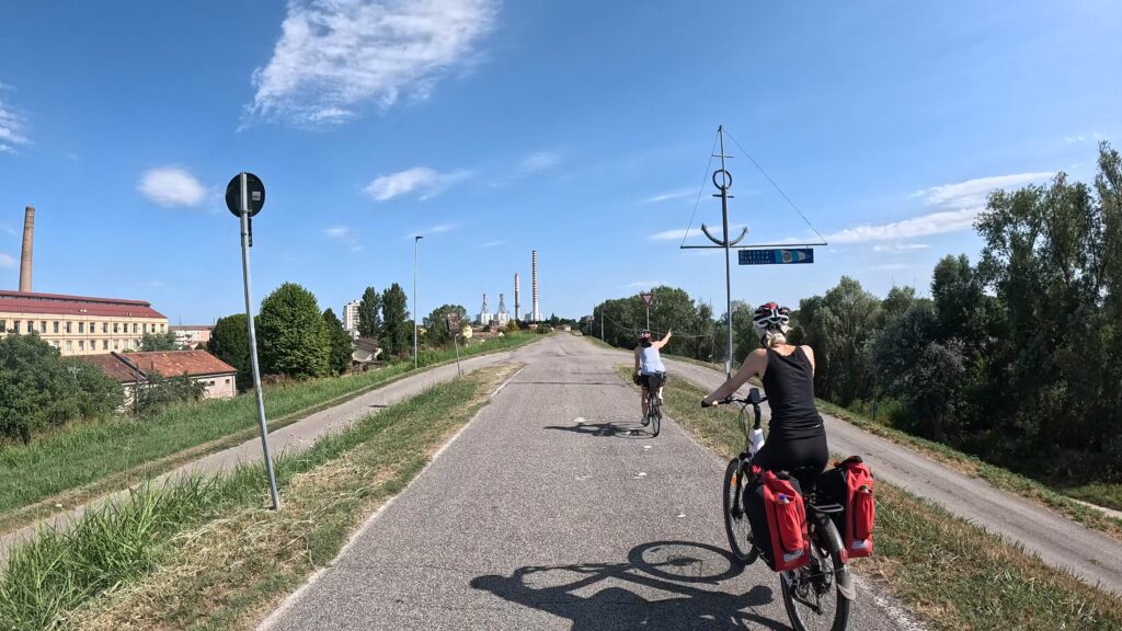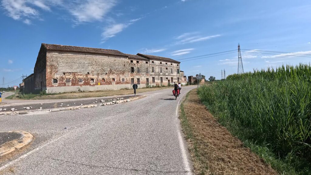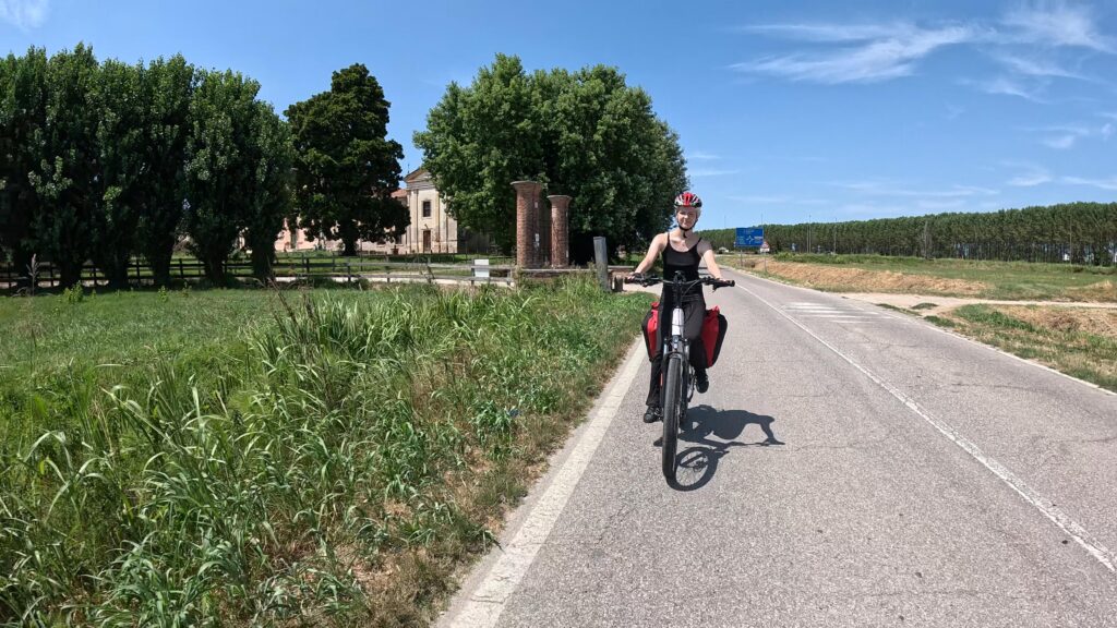 Po krótkim postoju żegnamy Weronę i jej kamienne ulice. Wyjazd z miasta nie należy do najłatwiejszych – ścieżek rowerowych jest niewiele, ruch duży, a temperatura od rana sięga trzydziestu stopni. Za to po kilku kilometrach otwierają się rozległe równiny. Widać, że góry zostały daleko za nami, a krajobraz zmienił się na dobro płaskich pól, kanałów i niekończących się dróg ciągnących się po horyzont.